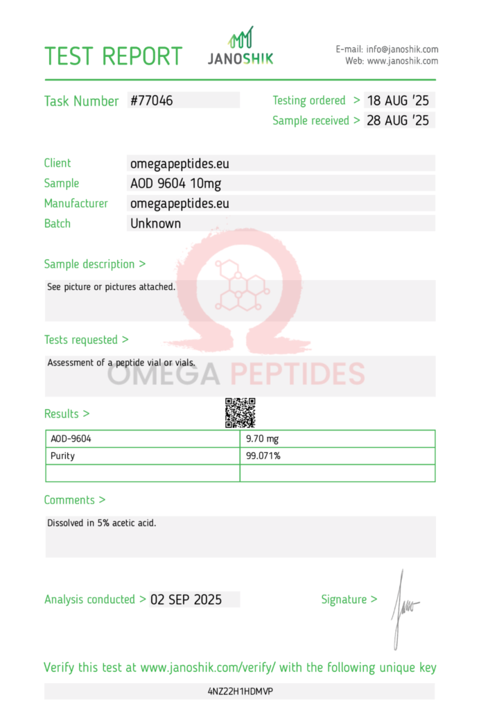 AOD-9604 – 5mg (Lyophilized Peptide) – For Research Use Only